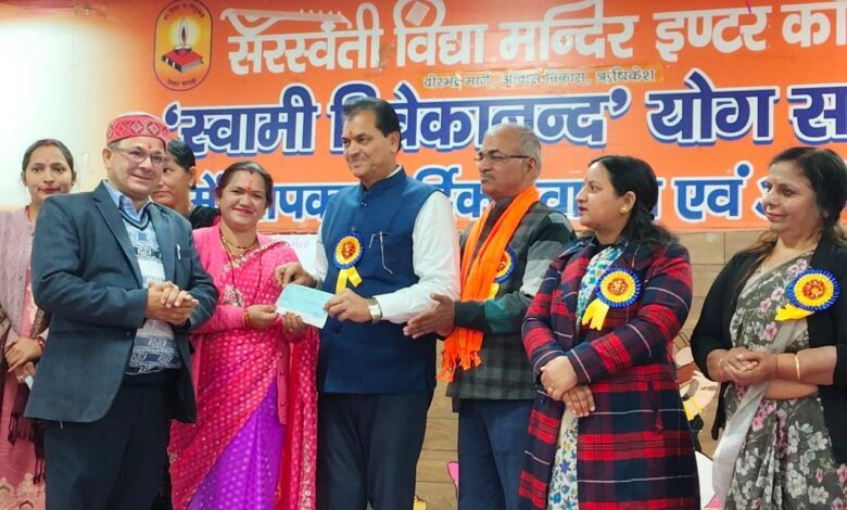 ऋषिकेश ( राव शहजाद ) । सरस्वती विद्या मन्दिर इंटर कॉलेज, आवास विकास में शनिवार को कमला नेहरू पुरस्कार वितरण समारोह का भव्य आयोजन किया गया। भारतीय संस्कृति एवं जीवन मूल्यों पर आधारित शिक्षा को समर्पित इस कार्यक्रम में विद्यालय परिवार एवं अभिभावकों की उल्लेखनीय उपस्थिति रही। कार्यक्रम में 2024 के हाईस्कूल और इंटर के उत्कृष्ट प्रदर्शन वाले विद्यालय की 135 मातृ शक्ति को 1,000 रुपए के चैक उत्तराखंड सरकार के माध्यम से आज अतिथियों द्वारा वितरित किया गया। कार्यक्रम का शुभारंभ मुख्य अतिथि प्रेमचंद अग्रवाल विधायक एवं पूर्व कैबिनेट मंत्री प्रेमचंद अग्रवाल , कार्यक्रम अध्यक्षता डॉ. सुनैना रावत (राज्य एन.एस.एस. अधिकारी, विशिष्ट अतिथि भावना सिंधी (निदेशक, सिंधी महिला क्लब ऋषिकेश)अन्य उपस्थिति अतिथि इ. अनिल कुमार मित्तल , विद्यालय प्रबंध समिति के व्यवस्थापक डॉ.गौरव वार्ष्णेय, डॉ. शशि कुमार शर्मा (अध्यक्ष) एवं अन्य पदाधिकारी, विद्यालय के प्रधानाचार्य उमाकांत पंत ने संयुक्त रूप से किया। कार्यक्रम में पहुंचे सभी अतिथियों का शॉल ओढ़ाकर और स्मृति चिन्ह भेंट कर विद्यालय एवं प्रबंध समिति द्वारा स्वागत सम्मान किया गया। कार्यक्रम के मुख्य अतिथि प्रेमचंद अग्रवाल ने विद्यार्थियों एवं मातृ शक्ति को संबोधित करते हुए कहा कि भारतीय ज्ञान परंपरा आज भी विश्व को दिशा देने की क्षमता रखती है। उन्होंने 135 पुरस्कार पाने वाले छात्र-छात्राओं की माता उनके बच्चे की उज्ज्वल भविष्य की शुभकामनाएं देते हुए कहा ऐसे आयोजन विद्यार्थियों में उत्कृष्टता की भावना को और प्रबल बनाते हैं।