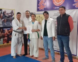 ऋषिकेश । रेनबुकई कराटे एकेडमी गीतानगर में प्रशिक्षण ले रहे कराटे के छात्र एवं छात्राओं को बैल्ट ग्रेडिंग परीक्षा पास होने पर प्रमाणपत्र वितरित किये गए। रेनबुकई कराटे एकेडमी के संस्थापक अंतरराष्ट्रीय कराटे खिलाड़ी एवं कोच कमल सिंह बिष्ट ने बताया कि 21 दिसम्बर को आयोजित हुई बैल्ट ग्रेटिंग परीक्षा में पास हुवे सभी खिलाड़ियों को मुख्य अतिथि अंतरराष्ट्रीय गढ़वाल महासभा अध्यक्ष डॉ राजे नेगी एवं योगाचार्य अनूप पुरोहित एवं समाजसेवी संजीव चौधरी ने बैल्ट एवं प्रमाणपत्र देकर सम्मानित किया है । एकेडमी के संस्थापक कमल बिष्ट ने जानकारी दी कि आगामी 1 फरवरी को रायवाला में आयोजित होने जा रही राज्यस्तरीय कराटे चैंपियनशिप में सभी खिलाड़ी प्रतिभाग करेंगे। इस अवसर पर मुख्यातिथि डॉ राजे नेगी ने सभी खिलाड़ियों को शुभकामनाएं देते हुवे कहा कि आज के समय मे जब बच्चे अपना अधिकतर समय स्क्रीन (मोबाइल टीवी या लैपटॉप) के सामने बिता रहे हैं ऐसे में कराटे का प्रशिक्षण उनके अंदर आत्मविश्वास, एकाग्रता एवं उनके चरित्र निर्माण को आगे बढ़ाने में सहायता पहुँचाता है।अभिवाहको से अनुरोध है कि वो अपने नोनिहालो को मोबाइल नही बल्कि मैदान प्रदान करें ताकि उनका मानसिक एवं शारिरिक स्वास्थ्य दोनो ही फिट रह सकें। इस मौके पर निम्नलिखित बच्चो ने बैल्ट ग्रेडिंग परीक्षा पास की। येलो बेल्ट प्राप्त करने वाले बच्चों के नाम- अर्णव, शिवांश नेगी, शिवांगी, रुद्रांश, एंजेल, अथर्व, अवनी, आयुष बिष्ट, अनन्या बिष्ट, शिवांश, अभिनव शाही, अंवित गौड़,आदित्य, वरदान, रिद्धि, अनिरुद्ध, सूर्यांश, अनुष्का, अविरल, आदित्य गुप्ता, येलो सीनियर बेल्ट प्राप्त करने वाले बच्चों के नाम- आरव पयाल, डेलिशा, अथर्व, गौतम। ब्लू बेल्ट प्राप्त करने वाले बच्चों के नाम- रागी, विमृत, वेदांश, प्रतिष्ठा, पार्थेश, दक्ष, पारुल, जेनिश, शाश्वत।