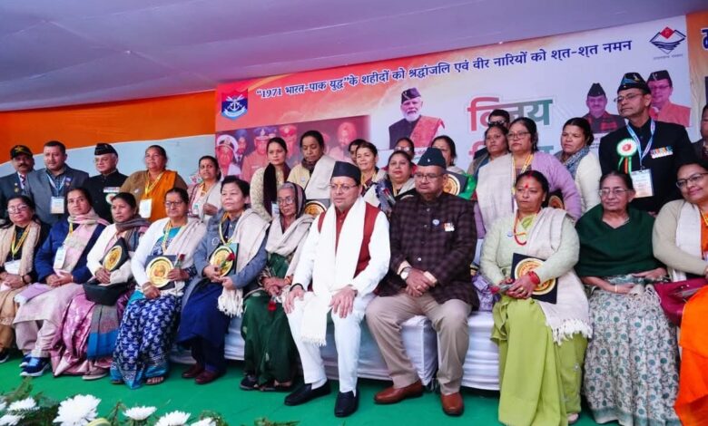 देहरादून ( राव शहजाद ) । मुख्यमंत्री पुष्कर सिंह धामी ने विजय दिवस के अवसर पर गांधी पार्क, देहरादून में आयोजित श्रद्धांजलि सभा एवं सम्मान समारोह कार्यक्रम में प्रतिभाग किया। उन्होंने शहीद स्मारक पर पुष्पचक्र अर्पित कर वीर बलिदानियों को श्रद्धांजलि दी। इस अवसर पर उन्होंने 1971 के युद्ध के सैनिकों और शहीदों के परिजनों को सम्मानित भी किया। कार्यक्रम में मुख्यमंत्री ने सैनिक कल्याण निदेशालय और जिला सैनिक कल्याण कार्यालय (डीडीहाट, हरबर्टपुर, पिथौरागढ़ एवं हरिद्वार) में सरकारी वाहन उपलब्ध कराने की घोषणा की। मुख्यमंत्री ने विजय दिवस की शुभकामनाएं देते हुए कहा कि हमारे वीर जवानों ने अदम्य साहस और सर्वोच्च बलिदान से 1971 के युद्ध में राष्ट्र की अखंडता और स्वाभिमान की रक्षा की। आज भारतीय सेना के शौर्य, त्याग और अटूट राष्ट्रनिष्ठा की गौरवगाथा को स्मरण करने का दिन है, जो हमारे इतिहास के पन्नों पर स्वर्णाक्षरों में अंकित है। उन्होंने कहा कि 1971 में पाकिस्तान के लगभग 93 हजार सैनिकों ने हमारी सेना के समक्ष आत्मसमर्पण किया। इस युद्ध में वीरभूमि उत्तराखण्ड के 248 बहादुर सपूतों ने भी अपना सर्वोच्च बलिदान दिया। हमारे प्रदेश के 74 सैनिकों को अपने अदम्य साहस और शौर्य के लिए विभिन्न वीरता पदकों से सम्मानित भी किया गया था।उत्तराखण्ड के लगभग प्रत्येक परिवार का कोई न कोई सदस्य सेना में है।