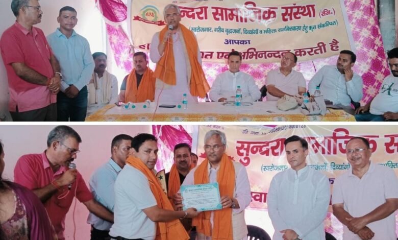 ऋषिकेश ( राव शहजाद ) । प्रधानमंत्री नरेंद्र मोदी के जन्मदिवस के उपलक्ष पर सुंदरा सामाजिक संस्था के द्वारा संस्था एक विशाल स्वास्थ्य शिविर का आयोजन किया गया ।जिसमें लगभग 500 से अधिक लोगों ने स्वास्थ्य शिविर का लाभ और परामर्श लिया। कार्यक्रम के मुख्य अतिथि हरिद्वार लोकसभा सांसद त्रिवेंद्र सिंह रावत के द्वारा कार्यक्रम का विधिवत रूप से उद्घाटन किया गया और सुंदरा सामाजिक संस्था के इस कार्यक्रम की सराहना की गई, साथ ही ग्राफिक एरा हॉस्पिटल के द्वारा किए जा रहे इस तरह के स्वास्थ्य शिविरों की भी सराहना की गई ।कार्यक्रम के अतिविशिष्ट अतिथि भरत मंदिर के महंत वत्सल प्रपन्नाचार्य महाराज ने कहा कि इस तरह के स्वास्थ्य शिविरों के आयोजन से लोगों को अपने स्वास्थ्य की रेखदेख में आसानी होती है और बिना किसी खर्चे के उनका इलाज हो जाता है जिससे जरूरतमंदों को बहुत अधिक फायदा होता है ,इसलिए सामाजिक संस्थाओं के द्वारा इस प्रकार के स्वास्थ्य शिविर आयोजित किए जाते रहने चाहिए। कार्यक्रम का कुशल संचालन संस्था के अध्यक्ष ज्योति सजवान जी के द्वारा किया गया।कार्यक्रम संयोजक राजेंद्र प्रेम सिंह बिष्ट ने कहा कि शिविर का उद्देश्य स्वास्थ्य सेवाओं को जन-जन तक पहुंचना है, जिससे सभी क्षेत्रवासी एक स्वस्थ जीवन सके और समाज के उत्थान में अपना सहयोग दे सकें। और एक स्वस्थ समाज का निर्माण हो। कार्यक्रम के अध्यक्ष संजीव चौहान ने कहा कि त्रिवेंद्र सिंह रावत जी के द्वारा पूरे हरिद्वार लोकसभा क्षेत्र में जिस तरह के विकास कार्य और सामाजिक कार्य किया जा रहे हैं उसे यह स्पष्ट है कि भाजपा सरकार की नीतियों को वह जन-जन तक पहुंचा रहे हैं और भाजपा को और अधिक मजबूती प्रदान कर रहे हैं जिसका लाभ प्रत्येक भाजपा कार्यकर्ता को मिल रहा है। कार्यक्रम में सुंदरा सामाजिक संस्था के द्वारा हरिद्वार लोकसभा सांसद माo त्रिवेंद्र सिंह रावत जी के कर कमलो द्वारा शिक्षा और सामाजिक क्षेत्र में सहयोग के लिए रंजन अंथवाल ,,राजेंद्र गुप्ता को खेल प्रशिक्षक और आत्मरक्षा के लिए, एकलव्य संस्था को सामाजिक सेवा के लिए सम्मानित किया गया।