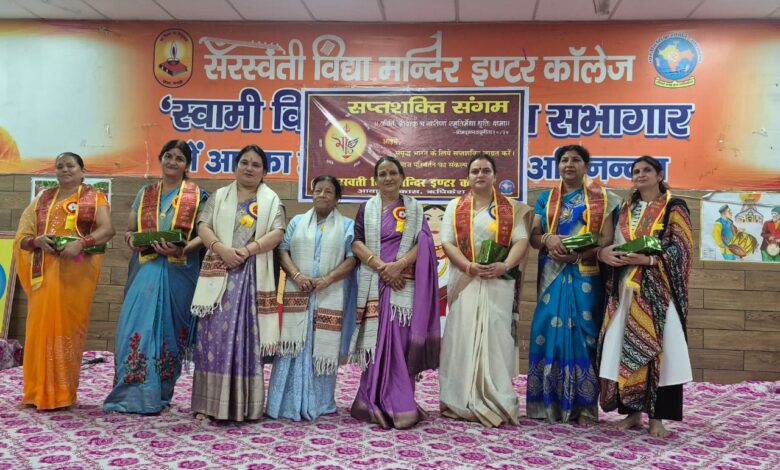 ऋषिकेश ( राव शहजाद ) । विद्या भारती अखिल भारतीय शिक्षा संस्थान से संबद्ध सरस्वती विद्या मंदिर इंटर कॉलेज, आवास विकास, ऋषिकेश में शुक्रवार को “सप्तशक्ति संगम कार्यक्रम का भव्य आयोजन हुआ। इस आयोजन का उद्देश्य समाज में नारी शक्ति के विविध स्वरूपों को प्रदर्शित करना और महिलाओं में आत्मविश्वास एवं नेतृत्व क्षमता को प्रोत्साहित करना रहा।कार्यक्रम का शुभारंभ माँ सरस्वती की वंदना और दीप प्रज्वलन के साथ हुआ। तत्पश्चात छात्राओं ने समूह गीत, नृत्य और विविध सांस्कृतिक प्रस्तुतियों के माध्यम से नारी की ज्ञान शक्ति, आत्म शक्ति, संगठन शक्ति, नेतृत्व शक्ति, राष्ट्र शक्ति, करुणा शक्ति और धैर्य शक्ति को जीवंत किया साथ ही परिवार प्रबोधन विषय सबके समक्ष रखा। मुख्य वक्ता डॉ. मंजू बड़ोला ने कहा कि नारी किसी भी समाज की प्रेरक शक्ति है। जब नारी आगे बढ़ती है, तो पूरा समाज प्रगति करता है। उन्होंने कहा कि ऐसी पहल नारी के आत्मविश्वास को नई ऊँचाइयाँ देती हैं। वही मुख्य वक्ता पूनम अनेजा ने कहा कि प्रत्येक नारी में असीम संभावनाएँ छिपी हैं, जिन्हें पहचानना और संवारना आज के समय की आवश्यकता है। उन्होंने कहा कि “सप्तशक्ति संगम” महिलाओं में नेतृत्व और संगठन शक्ति को सशक्त बनाने का मंच है। कार्यक्रम की अध्यक्ष डॉ. अंजना कोहली ने अपने उद्बोधन में कहा कि यह संगम नारी में निहित शिक्षा, पर्यावरण और राष्ट्र निर्माण की शक्ति को जाग्रत करने का प्रयास है। उन्होंने छात्राओं को समाज में सकारात्मक परिवर्तन की दिशा में सक्रिय भूमिका निभाने का संदेश दिया। वहीं कार्यक्रम में वरिष्ठ अध्यापिका यशोदा भारद्वाज ने “सप्त शक्ति संगम” कार्यक्रम की प्रस्तावना को सभी नारी शक्ति के समक्ष रखा है । कार्यक्रम के दौरान शिक्षिकाओं द्वारा विचारोत्तेजक प्रश्न पूछे गए, जिनका उत्तर उपस्थित महिलाओं और छात्राओं ने आत्मविश्वास के साथ दिया।