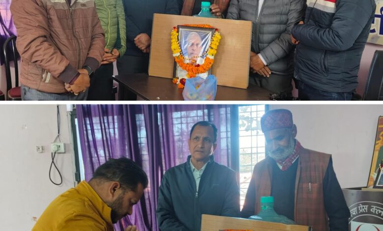 श्रद्धांजलि सभा में संस्थापक अध्यक्ष व संरक्षक हरीश तिवारी, संरक्षक मनोहर काला, जितेंद्र चमोली, राजेश शर्मा, अध्यक्ष दीपक सेमवाल, रणवीर सिंह, राव शहजाद अन्य मौजूद रहे।