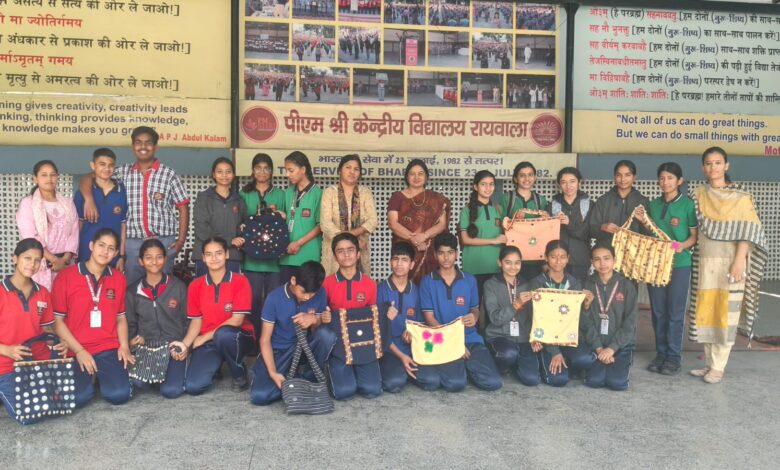 रायवाला ( राव शहजाद ) । पीएम श्री केन्द्रीय विद्यालय रायवाला में पीएम श्री योजना के अंतर्गत बैगलेस डे कार्यक्रम का सफल आयोजन किया गया। इस विशेष अवसर पर विद्यार्थियों को विभिन्न प्रकार के बैग बनाने और सुसज्जित करने का प्रशिक्षण दिया गया। कार्यक्रम का उद्देश्य विद्यार्थियों में सृजनात्मकता, आत्मनिर्भरता तथा व्यावहारिक कौशल का विकास करना था। इस दौरान विद्यार्थियों को कटिंग, सिलाई, लेस वर्क, मिरर वर्क आदि गतिविधियाँ सिखाई गईं। विद्यार्थियों को फैशन डिजाइनर श्रीमती रश्मि अमोली द्वारा अत्यंत कुशलतापूर्वक प्रशिक्षण दिया गया। उन्होंने विद्यार्थियों को प्रत्येक चरण को धैर्यपूर्वक समझाया, आवश्यक तकनीकों का प्रदर्शन किया तथा स्वयं अभ्यास करवाकर उनकी शंकाओं का समाधान किया। विद्यार्थियों ने पूरे उत्साह, रुचि और समर्पण के साथ इस गतिविधि में भाग लिया। उन्होंने ध्यानपूर्वक हर निर्देश का पालन किया और स्वयं सुंदर एवं आकर्षक बैग तैयार किये। कार्यक्रम के दौरान विद्यार्थियों में आत्मविश्वास, सहयोग की भावना तथा रचनात्मक सोच का स्पष्ट विकास देखने को मिला।