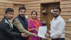 ज्ञापन देने में समाजसेवी प्रेमलाल शर्मा, विक्रांत भारद्वाज, दीपक थापा, आदित्य अन्य मौजूद थे।